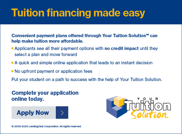 For your convenience, we participate with YourTuitionSolutions.com, which offers various financing plans with flexible terms and budget-friendly options.